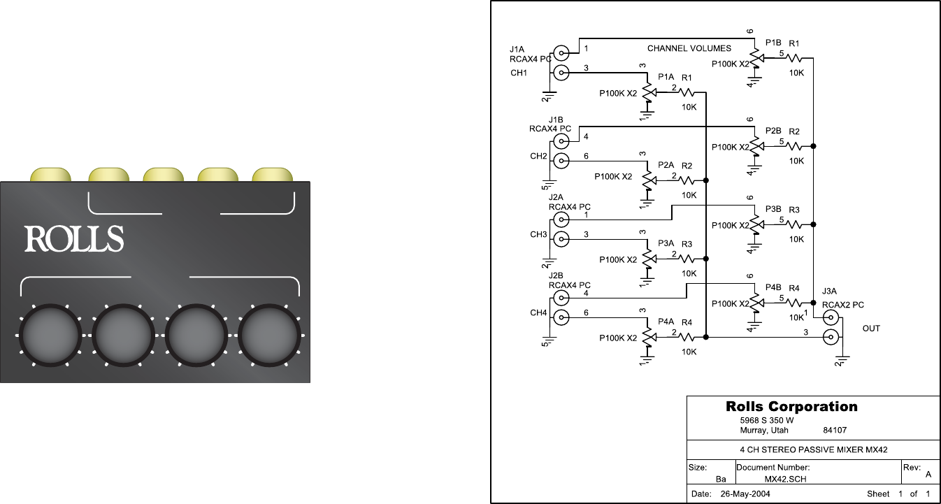 IN 1 - 4: Stereo RCA jacks for connection to line, instrument,